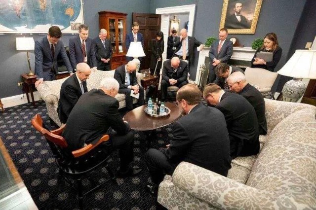 图在白宫办公室祈祷新冠肺炎疫情尽快过去